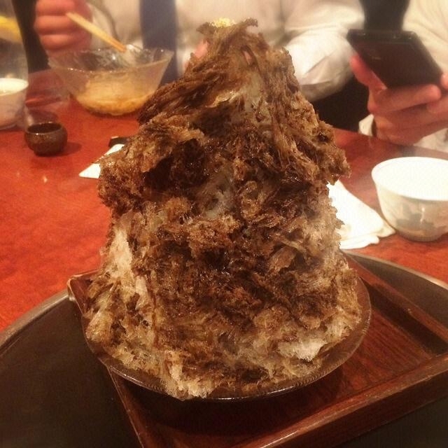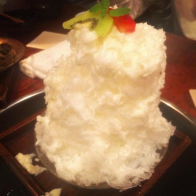 デザートのほうじ茶かき氷と、シロクマのかき氷、、、もはや熊の形はしていないけど笑