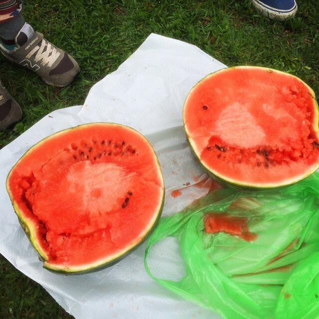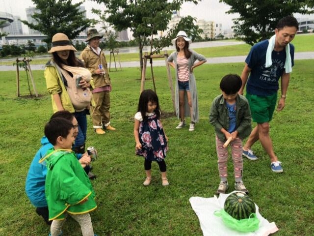 BBQといえばスイカ割り!?見事に?(大人の力で)まっぷたつ笑。