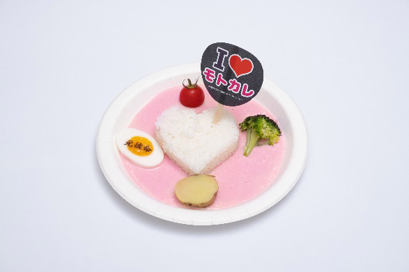 続いては、ショップを出てカフェエリアへ。ここには見た目もかわいいだけではなく、思わずクスッとしてしまうような楽しいメニューがたくさん。カフェに入ると、なにやらおいしそうな甘~い匂いが。記者はさっそく、ピンクのカレー「あま~い思い出モトカレー」を試食。