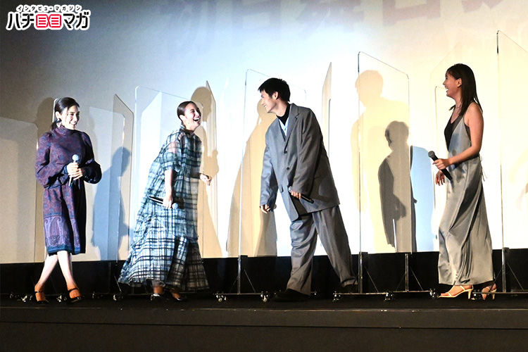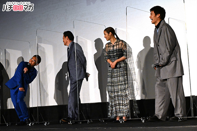 そんな八嶋さんと付き合いが長いという鈴木監督は、「そろそろ付き合いをやめようかな、と」と衝撃発言。八嶋さんはたまらず「なんでだよ!」とツッコミつつ、「僕の代わりの、いいのが見つかったからか!」と言うと、離れた場所で、浜野さんがピースするなど、関係性があるからこそのボケとツッコミの応酬で、舞台挨拶を盛り上げていました。