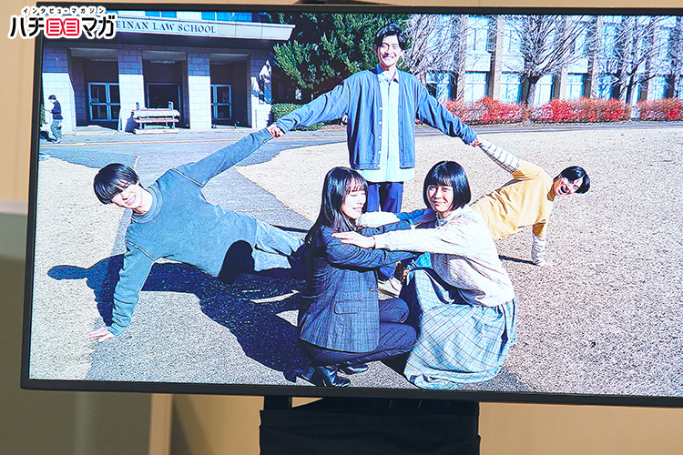 今作はロースクールに通う学生たちの物語でもありますが、山田さんは「みんなに膨大なセリフ量があって、しかも法律の難しい言葉ばかりで。みんなが頑張っていると『(自分も)頑張らなきゃ』と刺激になります」と、学生役のキャストの奮闘に感激している様子。また、北川さんも「数ページを1人でしゃべることもあるんですけど、(頭に)入っていて、堂々と自分らしく演じていて。私は(セリフを)覚えて吐くことでいっぱいいっぱいなので、みんなすごいなと思って見ています」と、同調していました。