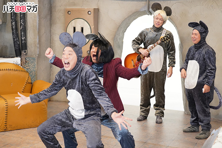 今回お送りする新作コントは全3本。各回ともに旬なゲストが“ねずみ”となって登場して、爆チュー問題とハチャメチャなコントを繰り広げます。2本目の「スター誕生」をテーマにしたコントに登場するのは、永野さんと、お見送り芸人しんいちさんのピン芸人の2人。