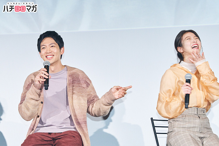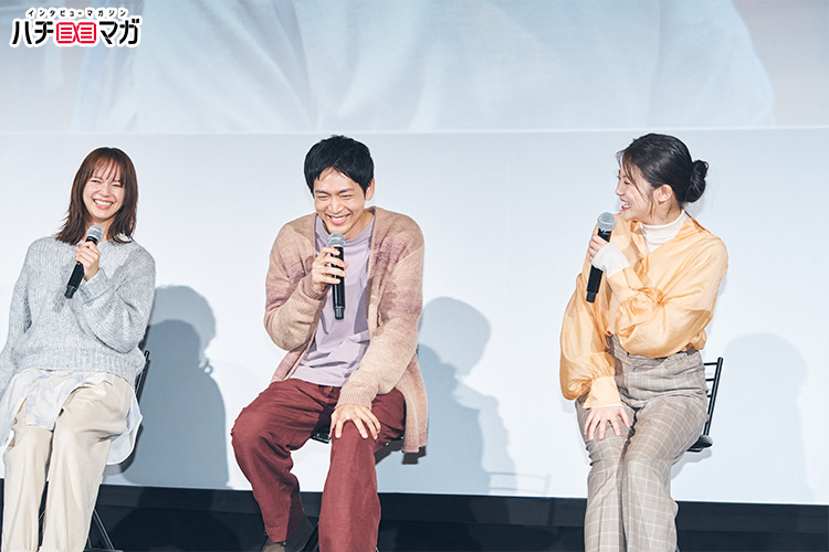 そして、本作のテーマ「男女の間に友情は成立するのか?」の話題も。会場では半々程でしたが、多部さんは「成立しない」派とのこと。松下さんは「年齢の近い男女の友情は難しいなと思います。ただ、僕の実家の近くにおばあちゃんが住んでいるんですけど、子供の頃からお世話になっている方で、そのおばあちゃんと僕は友達です」と、まさかの告白。これには会場からも笑いが起きますが、「すごい友達!向こうも友達だと思ってくれているはず。そういうケースもありますよね」と、熱弁しました。