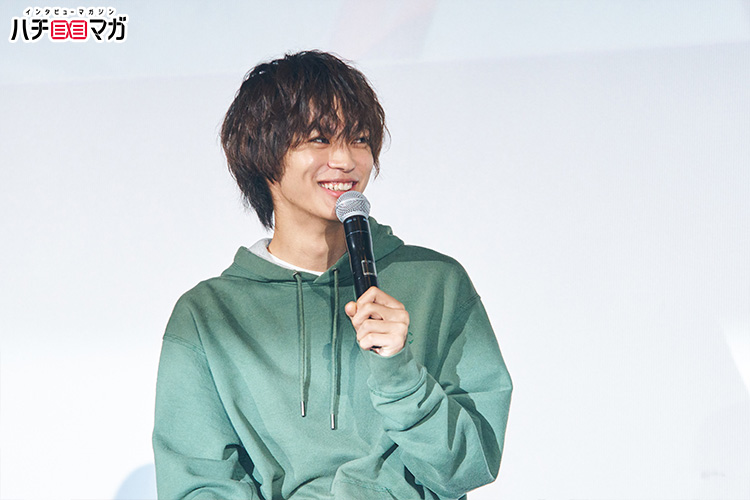 試写を終えたばかりの高揚感が満ちた客席の間を通ってキャストが会場に登場。多部さん、松下さん、今田さん、神尾さんは、観客の歓声を受けながらステージへ。スタートから約1ヵ月たったという撮影の話題で、多部さんは「見てくださる方に、ゆくえがどんな女性に映っているのか未知すぎて…『これでいいんだろうか』と探り探りなのが、正直なところ」と、今の率直な思いを明かします。“探り探り”なのは、他のキャストも同じようで、松下さんは「椿に共感できる部分がありつつ、僕だったらそうはしないと思う部分もあって、『椿だったらどうするか』をイメージするしかない」、今田さんは「見た目で決めつけられてしまう子なので、難しい」、神尾さんは「紅葉は、一緒にいる相手によって、ちょっとキャラクターが変わる。僕も例にもれず、まだ探っています」と語りました。