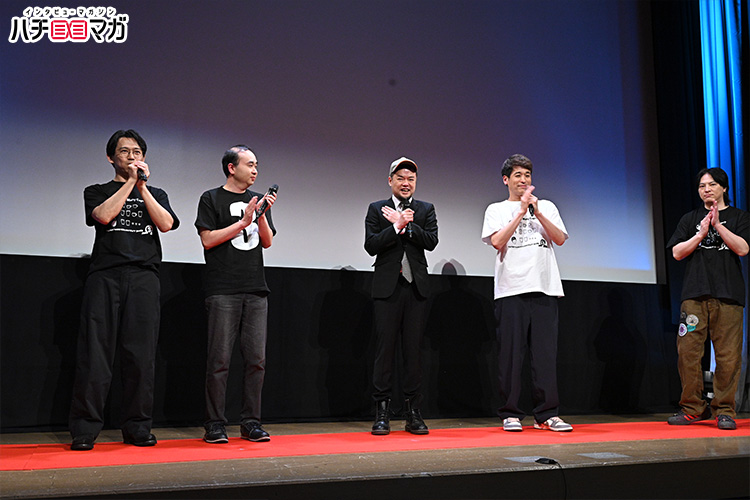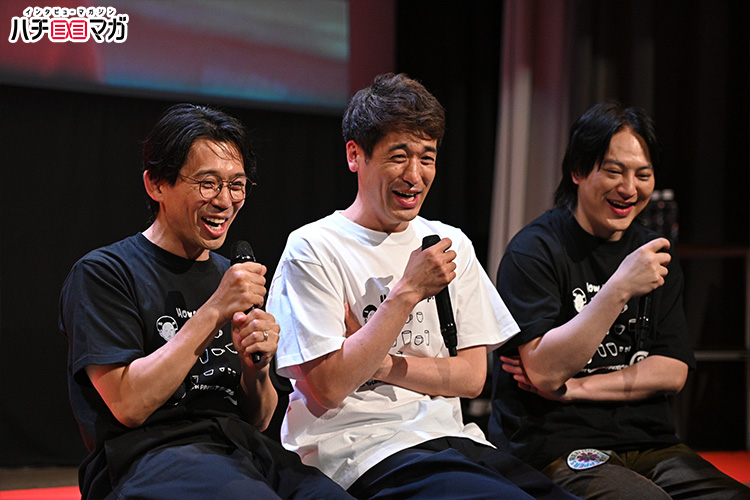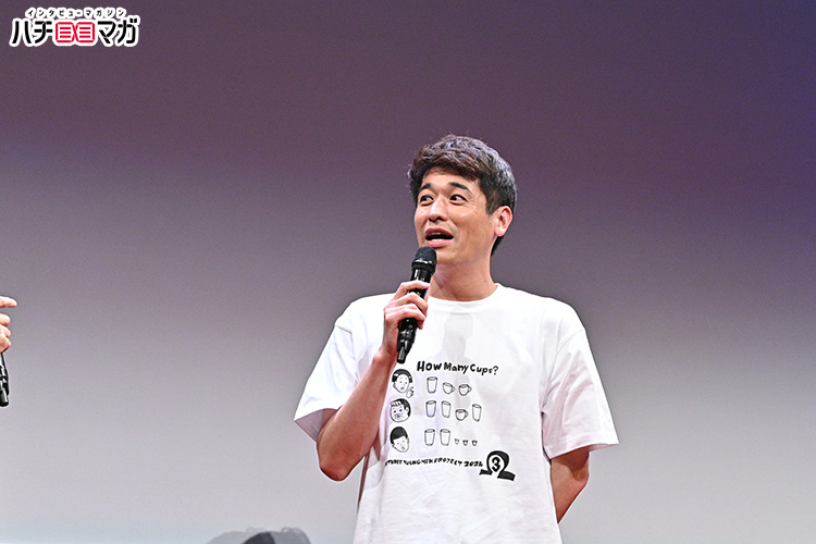 その後、ステージには原作者で脚本を担当する石原まこちん先生とウェイター・川守役の小林大介さんが登場。これまでのシリーズを通した撮影のエピソードトークに。現場となるファミリーレストラン『ビッグボーイ』に、あるとき、近所に住んでいると思われる子供から手紙が置かれていたことがあるとか。そこには『THE3名様』の好きなエピソードも具体的に書かれており、3人は「これはうれしかった!」と笑顔を見せます。