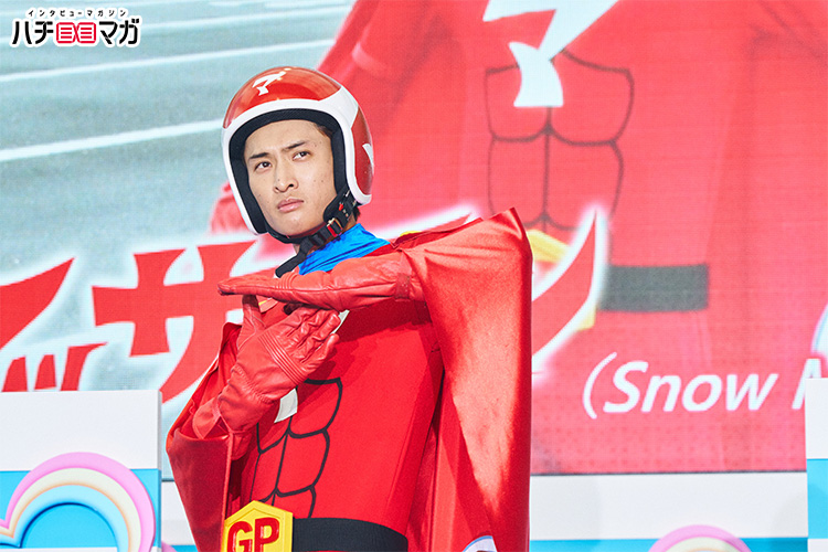 今回メインキャラクターを務めるマッサマンは、大量のスモークがたかれ、真っ白な煙に包まれながら登場。取材陣の各方向にしっかりと目線を送りながら、手で「マ」を示す“マッサマンポーズ”をビシッと決めて見せます。そして「ビックイベントのメインキャラクターに選ばれてうれしいですし、去年よりアツいイベントにしたいなと思っています」と喜びのコメントを。しかし、続けて「うれしいんですけど、“マッサマン”としてなので…Snow Manの向井康二ではないことがちょっと寂しいですね」と本音も明かしました。