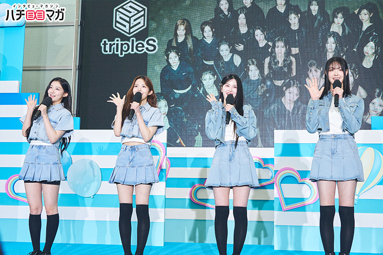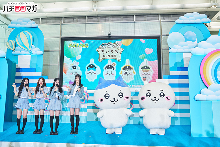 その後、オフィシャルサポーター、テーマソングを担当する韓国の24人組ガールズグループ「tripleS」から日本人メンバー、カエデさん、コトネさん、マユさん、リンさんが登場。ちいかわとハチワレとともに、「ちいかわアドベンチャー」や「ISLAND♡STADIUM」などおすすめポイントを語りました。