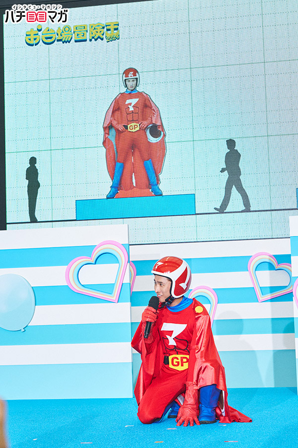 さらに、「マッサマンに内緒で、こんなことを進めていました」という佐野アナ。『ドッキリGP』のブースがある冒険ランドの入り口に、台座を含めて3.5メートルある“マッサマン像”が立てられることが発表され、「えー!!」と盛大に驚くマッサマン。仁王立ちするスタイルのマッサマンは、夜にはライトアップもされる予定とのこと。佐野アナが「お台場のシンボルと言えば、自由の女神、ガンダム、マッサマン像」と付け加えると、マッサマンは「恥ずかしい(笑)」とツッコミ。それでも「(3.5メートルはSnow Manのメンバーの)ラウールの1.5倍ですね」と戸惑いながらもうれしそうな表情を見せていました。
