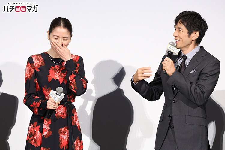 今回初めて三谷作品に参加した西島さんは、現場でもいろいろな苦労があったそう。「監督の演出の言葉が、本番中も現場に漂っているんですよ。だからおかしくて…」と、思い出し笑いをする場面も。この西島さんの言葉に、松坂さんも同調し「クライマックスのシーンで、小林さんに対して、スオミが中国語以外の言葉をしゃべったときのリアクションを演出していたんですけど…『飼っている犬が日本語をしゃべったときのような驚き方』って(笑)」と、まさかの演出を聞いてしまったとのこと。本番では役としてそこにいなければいけないものの、松坂さんは「その言葉が頭に残ってしまって、どんな顔をするんだろうとすごく気になっちゃって(笑)」と、芝居をしながらも小林さんのリアクションが気になってしまったと、撮影を振り返りました。