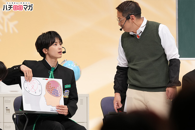 1限目の最後は、「脳内チェック」のコーナー。超特急メンバーが、懐かしの脳内メーカーを実施し、9人それぞれの脳内をのぞき見。結果は、「H」の比率が大きなメンバーがちらほら。タクヤさんはそんな脳内を見られてしまい恥ずかしい様子で、「おかしいよ!みんなもやったほうがいい!」と訴え、さらに「アーカイブ残したくない~」とこぼす場面も。終始笑いの絶えない公開収録となりました。