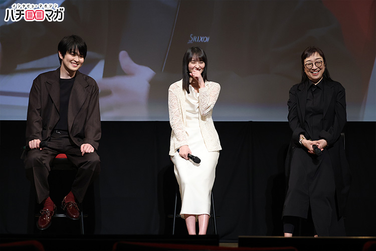 当日は主演を務めた遠藤さくらのほか、舞台となる運送会社・亀尾運輸の仲間を演じた望月歩と山野海も登壇し作品について語りました。