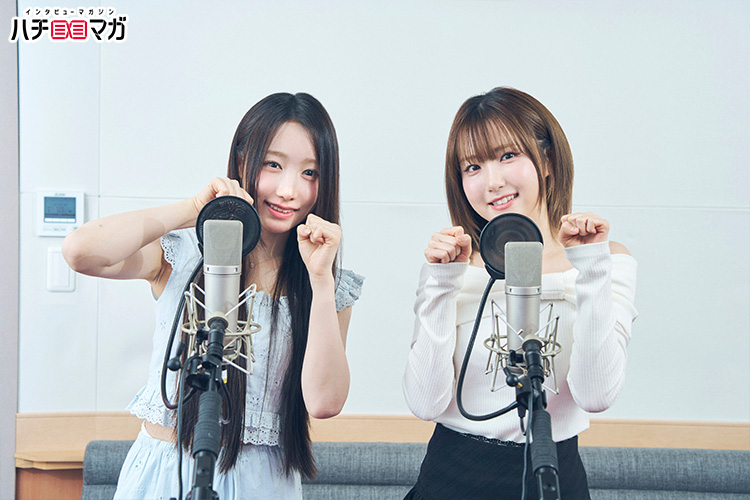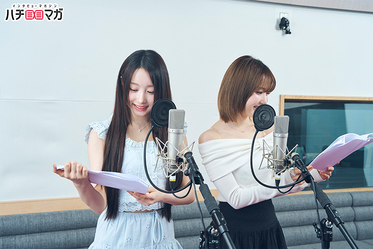 「よろしくお願いします!」と、明るく元気にあいさつをしながらアフレコブースに登場したHITOMIさんとMEIさん。
