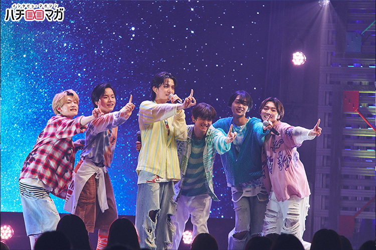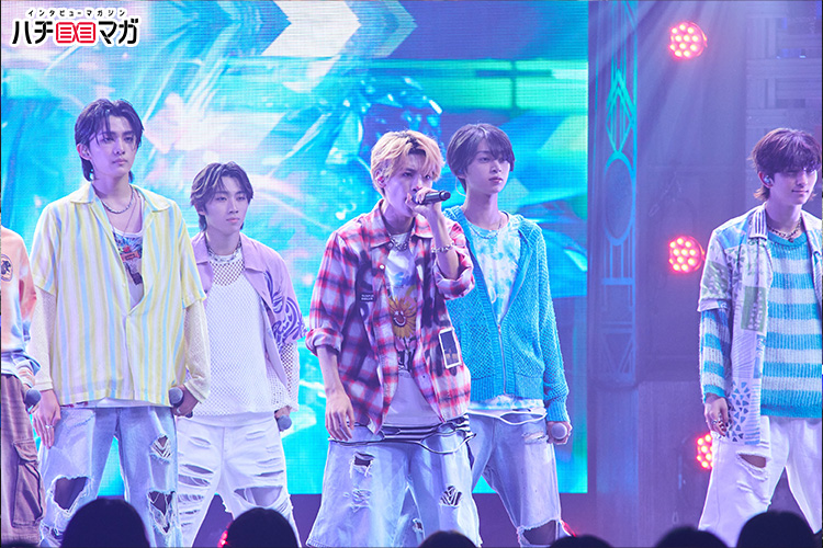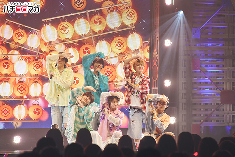 トップバッターを務めたのは、スターダストプロモーションのEBiDANに所属する6人組ボーカル&ダンスグループ・Lienel。セミの鳴き声とともに上手(かみて)から登場し、V字型に整列。『超絶SUMMERでバカになれ』をにぎやかに披露。夏の風物詩満載のナンバーに、場内は早くもお祭り騒ぎ状態に。