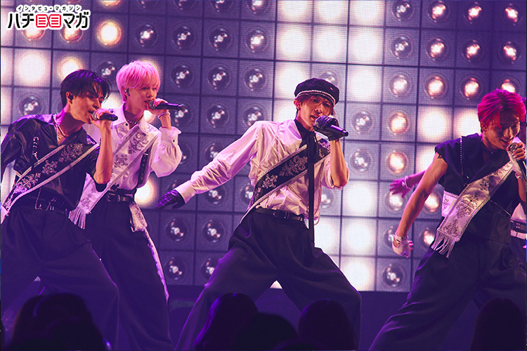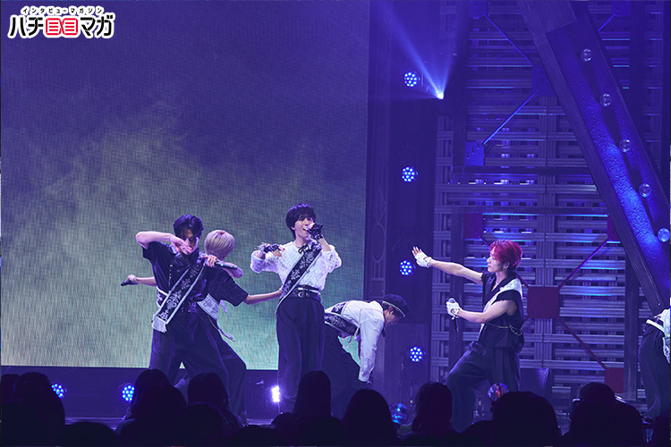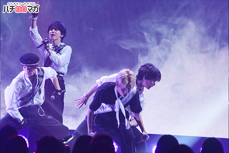 モノクロで統一したファッションで登場した8人は、クールなナンバー『WAKE UP』で、会場を一気にアダルトなテイストに。