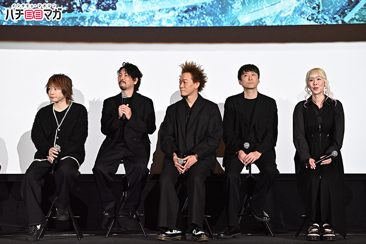 イベント後半には主題歌を担当しているAqua Timezの太志さん、OKP-STARさん、mayukoさん、TASSHIさん、大介さんも佐藤さんたちと同じように劇場後方からステージへ。